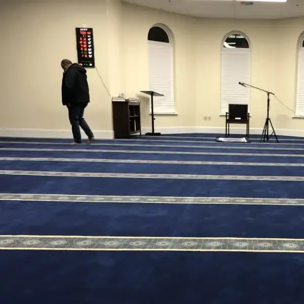 Enhance your prayer space with our Royal Blue Border Masjid Carpet, crafted for comfort and elegance. Perfect for mosques, this durable carpet adds serenity and style to every prayer area.